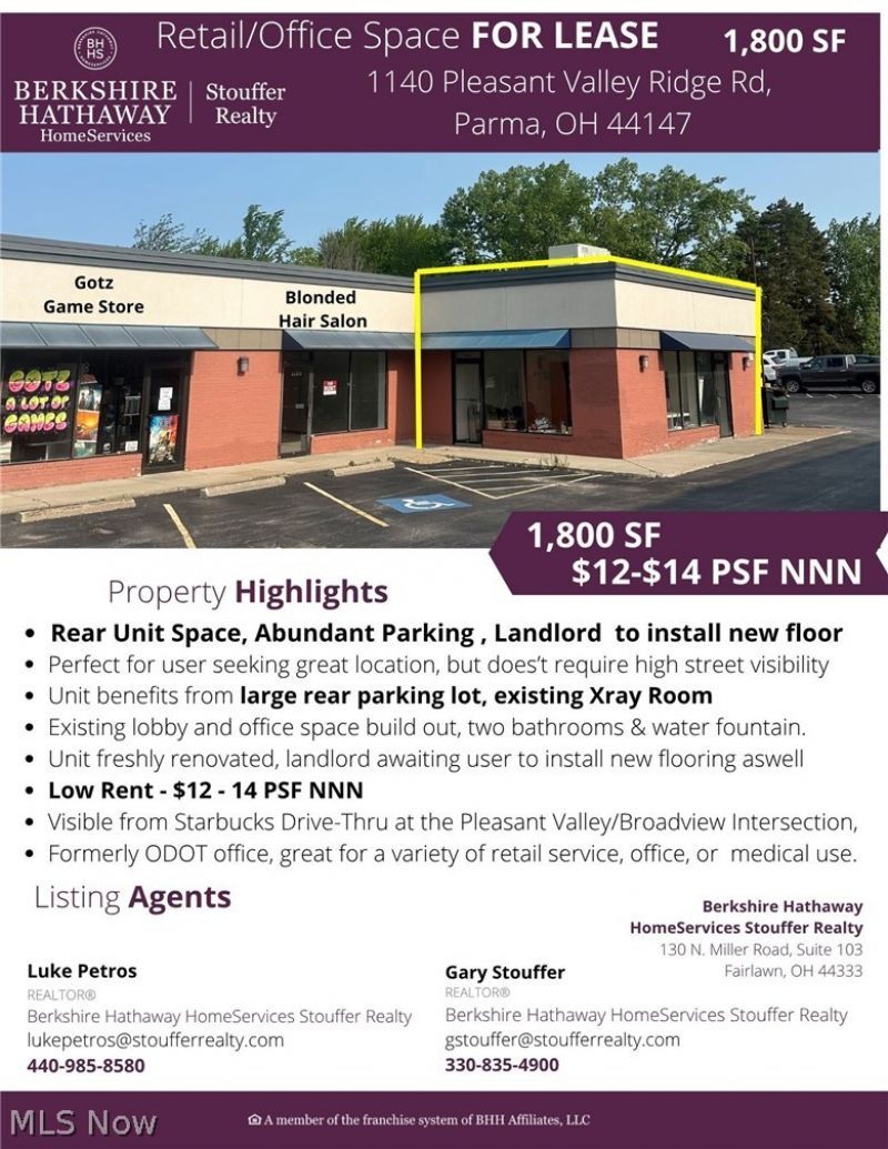 Agency Contact: lukepetros@stoufferrealty.com, 440-985-8580
